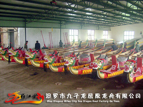 汨羅市九子龍屈原龍舟有限公司2013年成立于湘楚文化屈原圣地-----汨羅江畔。它既是龍舟競渡的源頭,又是祖輩制造龍舟的基地。廠長許桂生從事龍舟制作已有30余年歷史,為繼承祖傳制造龍舟富有一定的經驗。我廠是全國新型混合龍舟生產基地;中國龍舟協會器材委員會委員;通過了ISO9001國際質量體系認證。本廠其獨特的制作工藝成為了非物質文化遺產傳承廠家。自一九八九年開始生產國際標準龍舟以來,岳陽市歷屆賽事龍舟均由本廠員工生產,湖南省岳陽九子龍龍舟公司生產的龍舟都是現任廠長負責技術和組織工人的,其產品曾銷往北京第六屆民運會、上海三龍邀請賽、上海第四屆錦標賽、吉林冬運會。現在本廠融入沿海玻璃鋼技術,保留了傳統,提高了產品質量,現生產各種型號國際標準龍舟及各種民間龍舟...